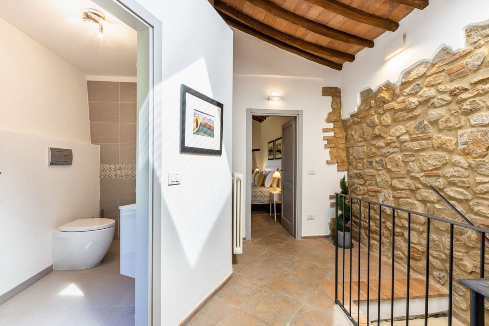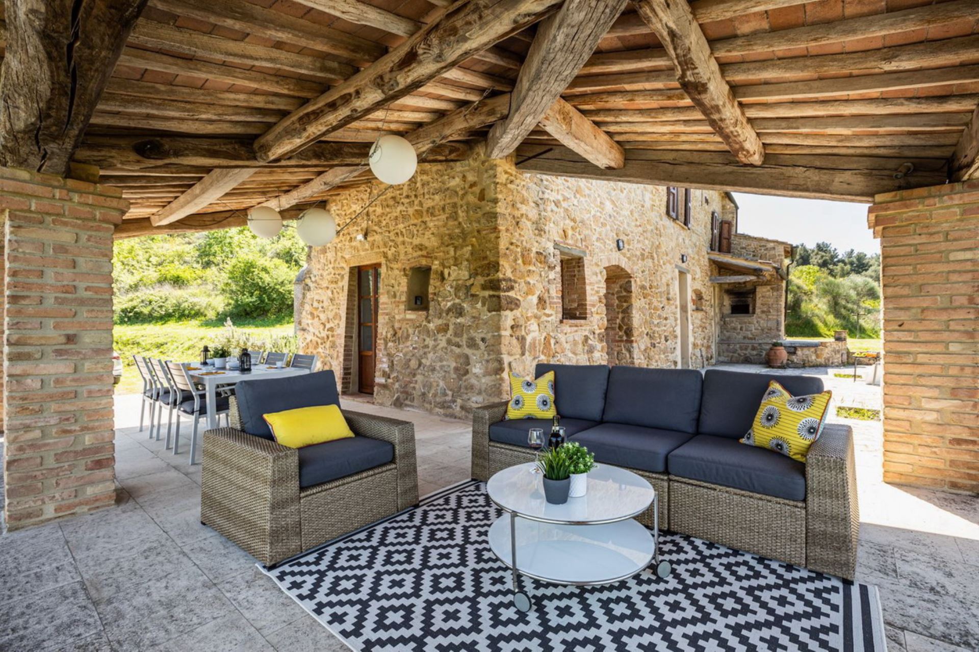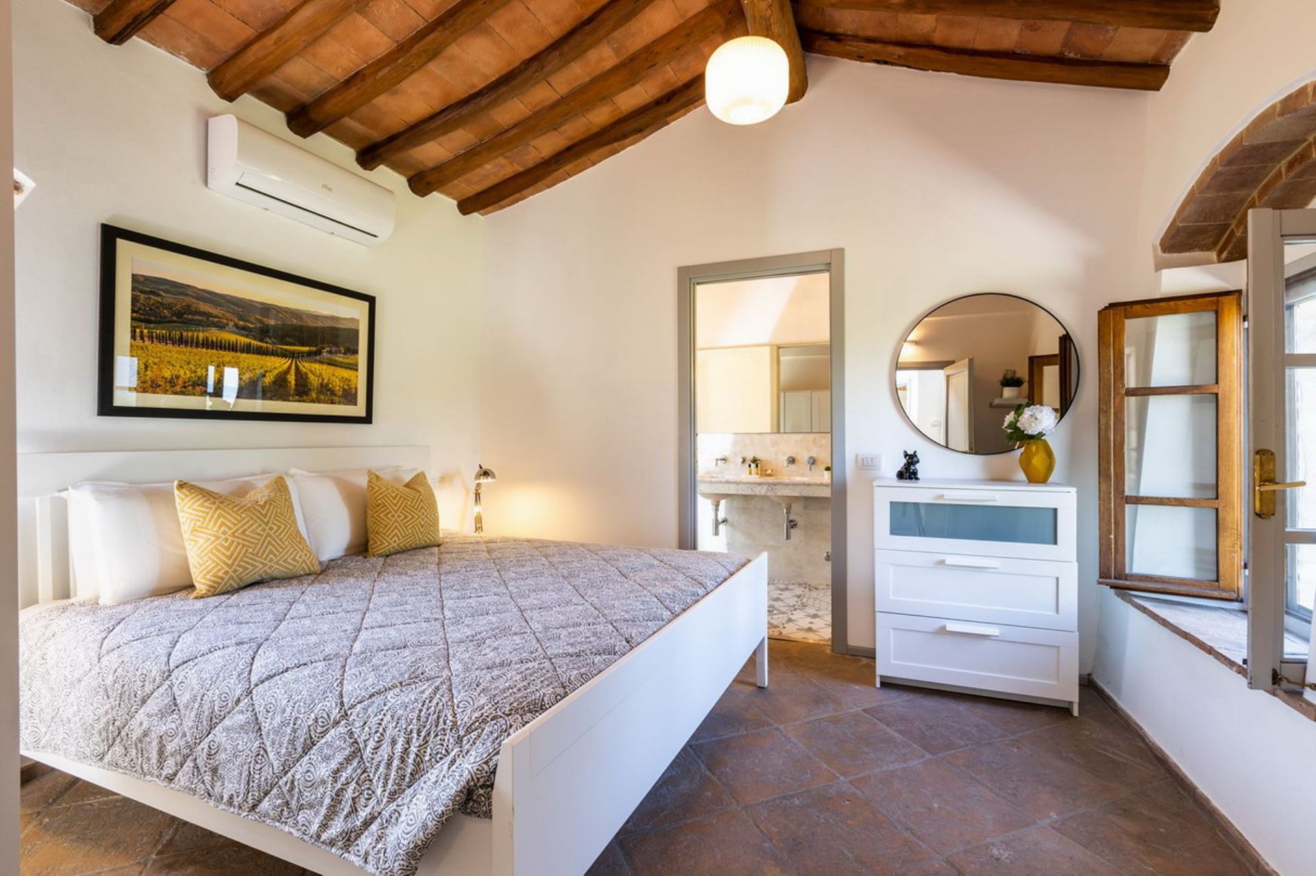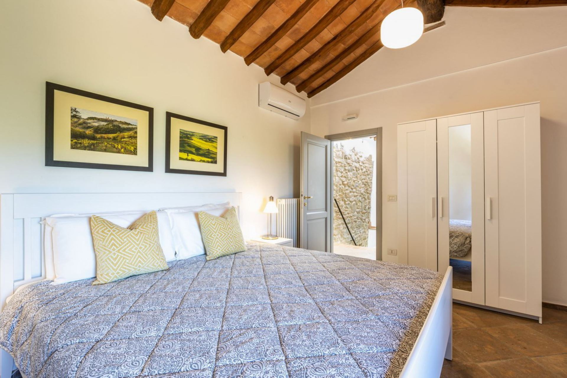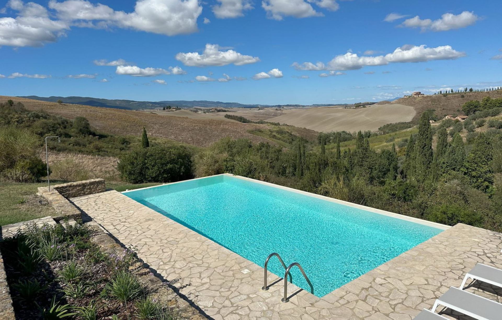 Villa Cantucci is an independent house privately situated between the Val d’Era and the Val di Cecina at only 2 km from Volterra and 25 from San Gimignano. The area for miles around is a jewel-case of natural beauty. This well restored villa is set in a stunning position at the feet of the Etruscan town. The house is very comfortable furnished and both from the pool and large windows are incredible views of the area. Villa Cantucci is a beautiful renovated villa for a family or a small group of friends and itself has been recently restored to a good standard, maintaining many traditional features and blessed with modern comforts in a thoroughly traditional and rustic setting. The interior is filled with lovely stylish touches and good quality furnishing. The pool with a nice view, the patio and the barbecue are perfect for outdoor summer fun, relaxing and dining with sun all day long. Swimming pool is open from April 15th to October 15th. Extra costs are payable at location: Visitor's tax 2,5 euro per day per person - pets 50 euro each one
