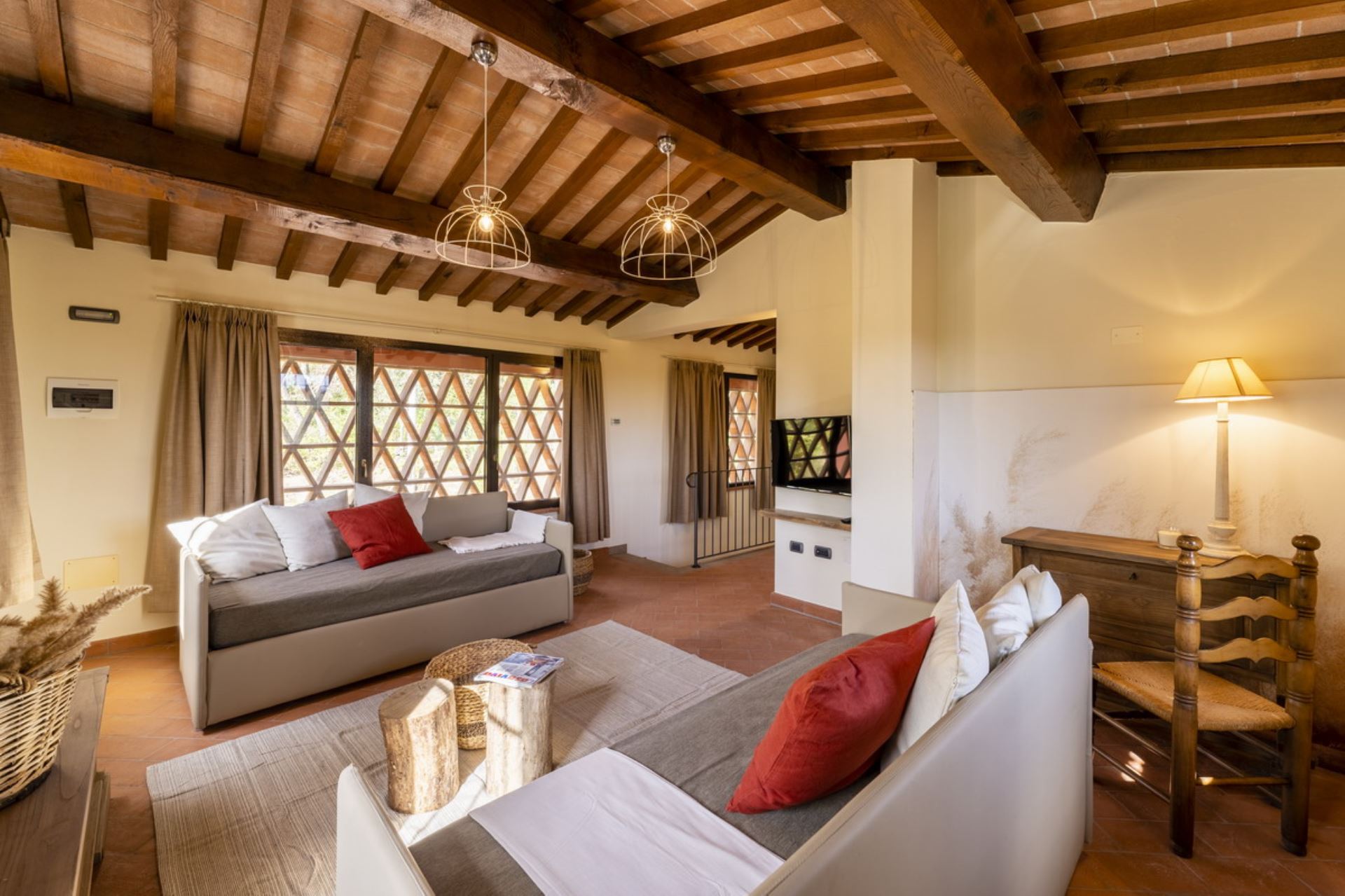 Villa San Gervasio is a beautiful villa for two families with four children or a small group of friends and itself has been recently built to a high standard, with many traditional tuscan features and blessed with modern comforts in a thoroughly traditional and rustic setting. The interior is filled with lovely stylish touches and high quality furnishing. The terraced pool with a nice view, the verandas and the barbecue are perfect for outdoor summer fun, relaxing and dining with sun all day long. The property is deep in the greenery of the Pisan countryside, the medieval town of San Miniato is only 21 kilometres away and there are several interesting places within 45 minutes driving like Pisa, Lucca, Certaldo, Volterra, San Gimignano, the beaches of Livorno and above all Firenze. Swimming pool and Jacuzzi are open from 1st of May till 31st of October.